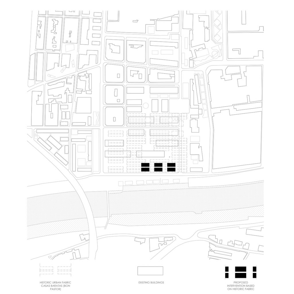 The project is located on the eastern edge of the former Casas Baratas housing estate in Bon Pastor, in direct contact with the Besòs River and the new urban infrastructures. This strategic position acts as a transition between the consolidated residential fabric and the river landscape. The layout of three towers understands this edge condition as an opportunity to stitch together city and territory, articulating the relationship between neighborhood, public space, and open landscape system.